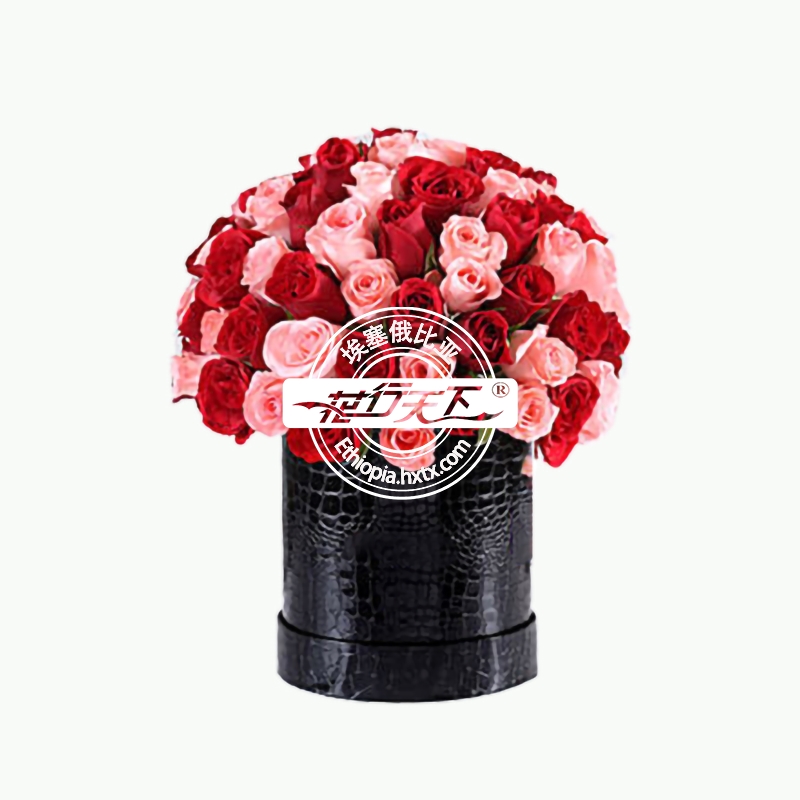 描述: 40朵红玫瑰、40朵粉玫瑰、黑色圆形纸盒装。